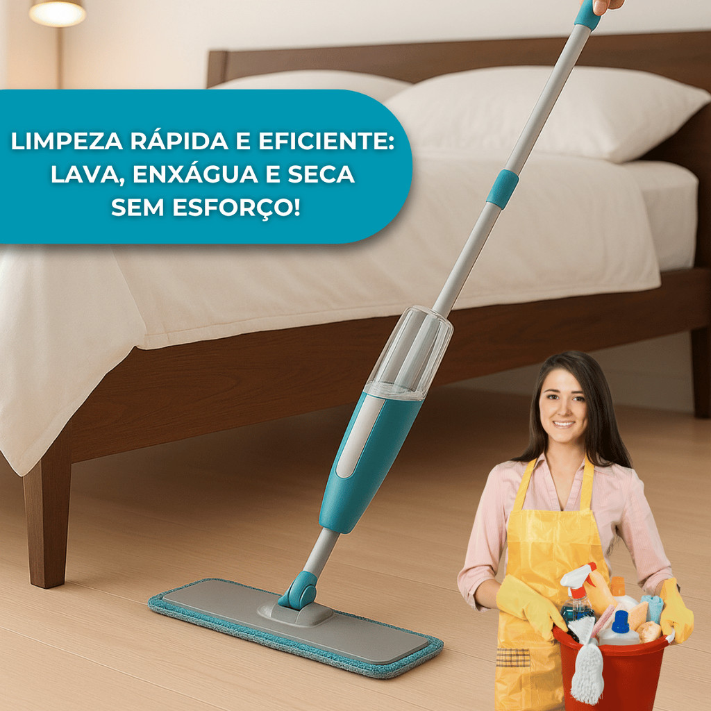 Kit Mop Spray Dispenser Com 3 Refil Rodo Profissional Limpeza Lava Seca Rápido Pano Microfibra Tippi