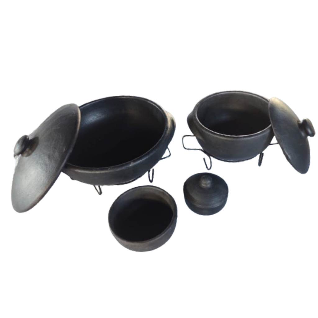 Conteúdo Vendido 1. Panela de Barro Moquequeira Capixaba 2 L 2. Panela de Barro Capixaba 1 L 3. Cumbuca 500 ml 4. Pimenteira 5. Dois Suportes de Ferro Informações sobre as panelas de barro capixabas: 1. Não há o uso de tintas e produtos tóxicos. - Todas elas recebem essa cor no processo de queima. 2. Pode ser usada em fogões a Lenha e a Gás. 3. Protegem os micronutrientes da sua comida, são seguras à sua saúde. 4. Mantêm a temperatura e o calor da comida por mais tempo do que as demais panelas. 🧼 Cuidados e Conservação - Lavar com água morna e sabão neutro - Não utilizar esponjas abrasivas - Secar bem antes de guardar - Armazenar em local seco e arejado Leve para sua cozinha a tradição e a autenticidade da Panela de Barro Capixaba Preta, perfeita para quem aprecia sabor, simplicidade e cultura no preparo das refeições.