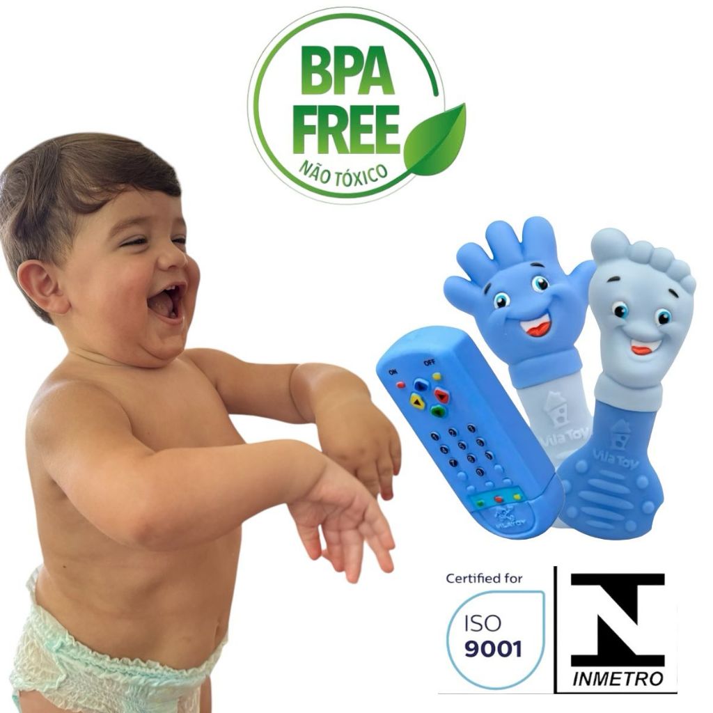 KIT COMPLETO !!!! Mordedor Mãozinha, Pezinho ou Controle Aqui vc que escolhe seu kit e cor !!!!!!!! PODE COMPRAR AVULSO TAMBÉM !!!! ESCOLHA COM CUIDADO PRODUTO SEM BPA E COM CERTIFICADO INMETRO !!!!!!! O Mordedor macio é o ideal para a primeira dentição do bebê. Pensando nisso, a Vila Toy trouxe o modelo mãozinha e Pezinho, com formato anatômico, que facilita para o bebê segurar e morder. Ainda possui texturas diferentes em todo o mordedor, que são ótimas para massagear e fortalecer as gengivas. Com suas cores alegre, desperta a curiosidade do bebê e prende a sua atenção em momentos de picos de estresse. ATENÇÃO: Brinquedo recomendado para crianças maiores de 2 meses. QUALIDADE GARANTIDA Você não irá se arrepender! - Envio com Nota Fiscal - Envio rápido - Vendas com seguro (Entrega do produto ou seu dinheiro de volta) - Fotos reais - Pronta Entrega