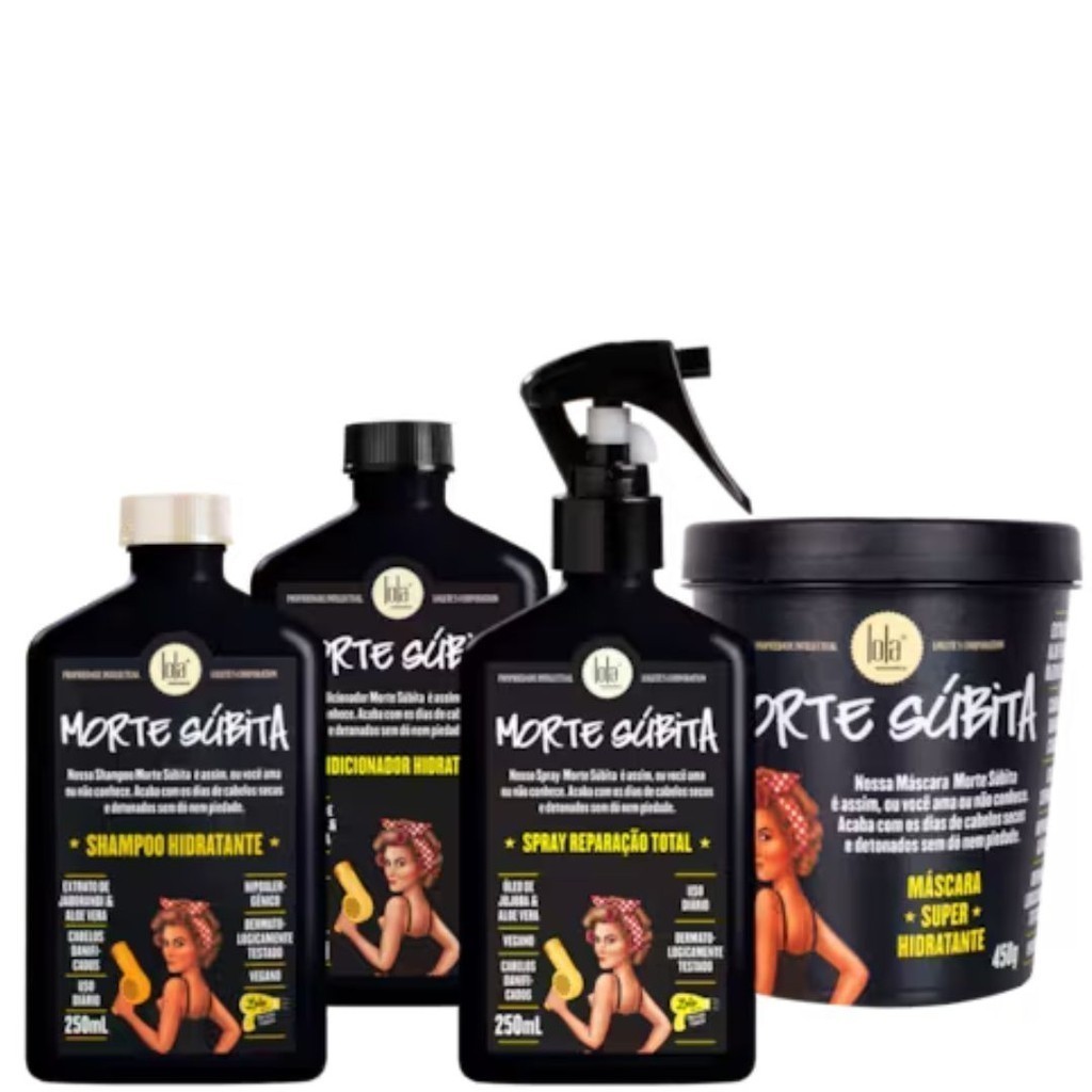 Kit Morte Subita 4 Produtos + Kit Ghee 3x100g Cronograma Completo Lola Cosmetics 🖤 Kit Morte Súbita – 4 Produtos O Kit Morte Súbita é um tratamento intensivo para cabelos danificados, quimicamente tratados ou ressecados. Composto por quatro produtos, ele promove uma hidratação profunda, restaurando a barreira de hidratação natural dos fios e proporcionando maciez, brilho e força. 🧈 Kit Be(M)dita Ghee – Cronograma Completo (3x100g) O Kit Be(M)dita Ghee é um cronograma capilar completo com três máscaras capilares, cada uma focada em uma etapa essencial: hidratação, nutrição e reconstrução. Formuladas com ingredientes naturais e veganos, essas máscaras proporcionam um tratamento profundo para cabelos danificados e sem vida.