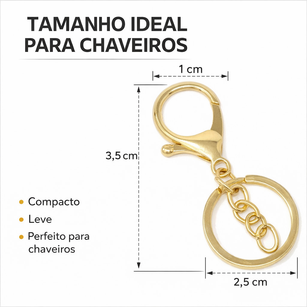 | Kit Mosquetão Para Chaveiro Dourado Com Argola 10 20 50 Peças | R$ 19,90 | 69% | 5.0/5 | 6 |