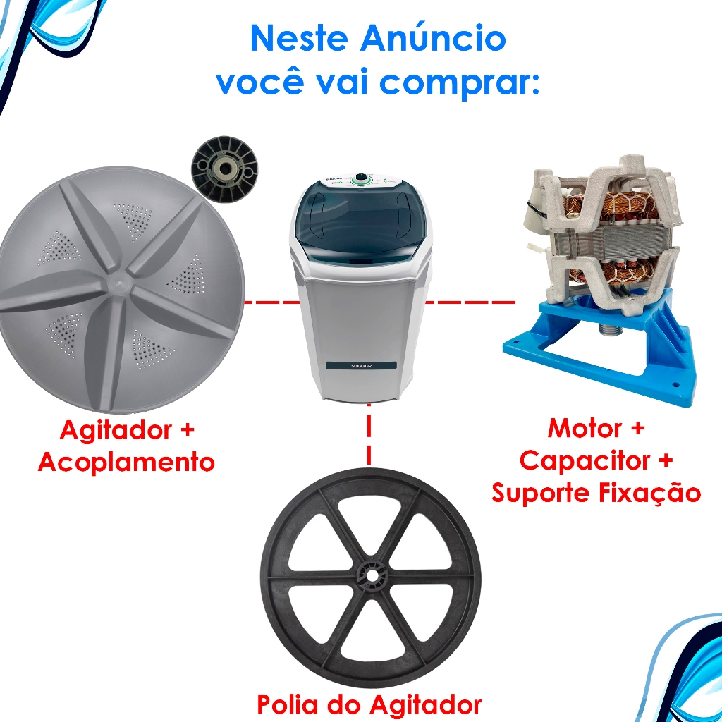 | Kit Motor Agitador Batedor para Tanquinho Suggar 10kg 12Kg 13Kg 15K... este produto | R$ 269,90 | 10% | 4.8/5 | — |
