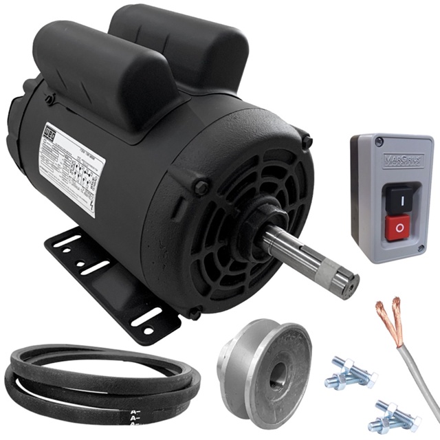Kit Motor Monofásico 2cv 110/220v Engenho de Cana Botini B120 Baixo Correia E Chave