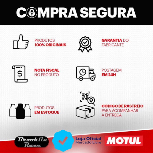 Óleo de transmissão automática MOTUL ATF VI 1L Características: Código: 105774 Código universal de produto: 3374650240657 Condição do item: Novo Marca: Motul Modelo: Óleo de transmissão automática MOTUL ATF VI 1L MPN: 105774 Número de registro de producto de ANP: 15115 Peso da unidade: 1 Kg Tipo de veículo: Carro/Caminhonete "Lubrificante 100% sintético de alto desempenho e baixa viscosidade especialmente projetado para transmissões automáticas modernas (sequenciais, eletronicamente controladas, etc …) com ou sem embreagem de bloqueio do conversor de torque, que precisem de fluidos compatíveis com a norma DEXRON VI. Particularmente recomendado para uso em caixas automáticas, caixas de transferência, sistemas de direção hidráulica e de assistência de direção de montadoras norte-americanas tais como GM, FORD, CHRYSLER,… montadoras asiáticas tais como HONDA, HYUNDAI, KIA, ISUZU, MITSUBISHI, NISSAN, TOYOTA,... ou europeias tais como AUDI, BMW, JAGUAR LAND ROVER, VW … É também adequado para alguns câmbios automáticos mais antigos, câmbios manuais, e sistemas de direção hidráulica onde as normas DEXRON III H ou DEXRON II D sejam requeridas. Antes do uso sempre consulte o manual do fabricante."