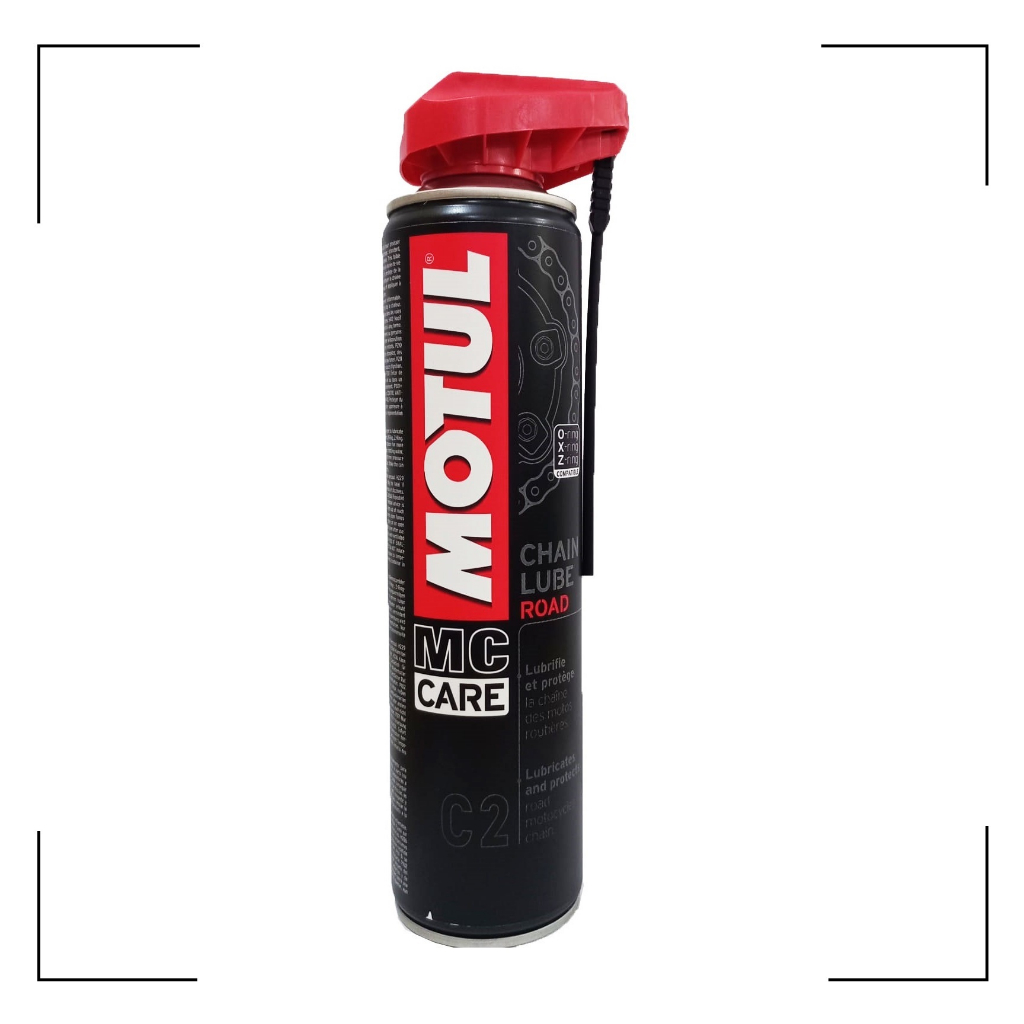 Kit Motul Limpa + Lubrifica Corrente Para o melhor desempenho e durabilidade da sua corrente, é necessário os devidos cuidados. Spray Limpa Corrente Chain Clean C1 - Motul 400ml - Poderoso desengraxante em spray para correntes de transmissão das motocicletas. - Limpa perfeitamente todo tipo de corrente de motos (Estrada e todo terreno) e outros veículos (bicicleta, ciclomotor, kart, quadriciclos...) - Elimina todos os depositos incrustados: pó, areia, terra, gordura, óleo. - Fórmula sem cloro, desengraxante perfeitamente compativel com as juntas de vedação das correntes:O-ring, X-ring, Z-ring. - Sem esfregar, dissolve rapidamente todos os resíduos de graxa, óleo. - Aumenta a duração de vida útil da corrente. - Evapora com rapidez. Spray Lubrificante de Corrente Motul C2 Chain Lube Road 400ml - Reduz a fricção e diminui as perdas de potência. - Aumenta a duração de vida útil da corrente. - Resiste à lavagem com água e protege a corrente contra a oxidação. - Ação neutra frente às juntas - Contém um dissolvente que facilita o desprendimento das incrustações - Permite a rápida penetração do lubrificante nos eixos de cada elo. Importante: 1 – Limpar a corrente previamente com Motul C1 Chain Clean. 2 – Agitar a embalagem antes do emprego. 3 – Salpicar a corrente com Motul C2 Chain Lube Road pela parte do interior da mesma ao longo de todo a extensão. 4 – Deixar repousar durante uns minutos para permitir a evaporação do dissolvente. Para uma melhor protecção da corrente, recomendamos repetir a operação de forma periódica.