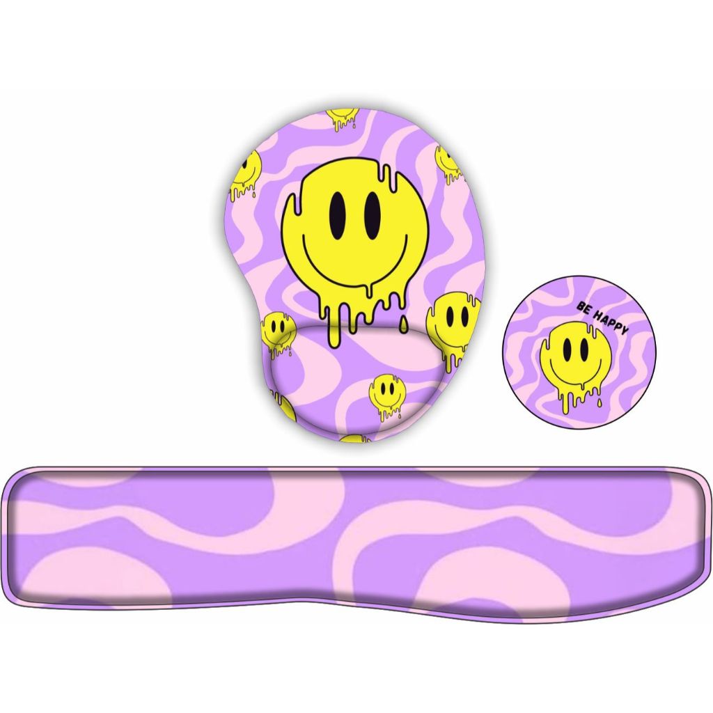 Kit mouse pad + apoio de teclado + porta copos estampas Emojii feliz