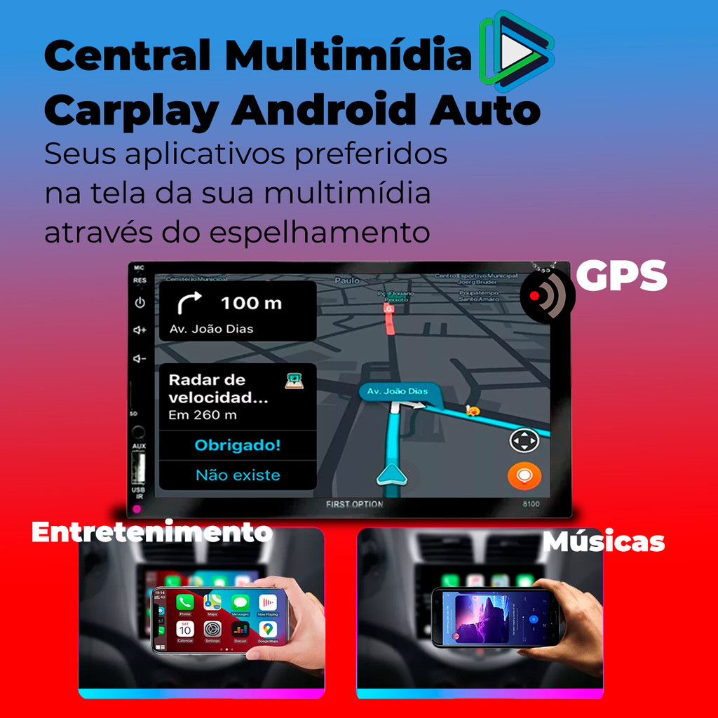 Kit Central Multimídia Carplay Android Auto 7 Polegadas Palio Ideia Siena Strada Palio Weekend + Moldura + Câmera de Ré Compatibilidade: - PALIO 2003 > 2012 - STRADA 2005 > 2012 - SIENA 2003 > 2012 - IDEA 2005 > 2012 - PALIO WEEKEND 2003 > 2012 --- Descrição: Kit Central Multimídia Carplay com Bluetooth Espelhamento de Celular + Moldura + Câmera de Ré Multimídia 7 MP5 HT-3625CA com Apple Carplay e Android Auto Entrada USB Frontal Bluetooth H-Tech Transforme a experiência dentro do seu carro com a Multimídia MP5 H-Tech HT-3625CA! Um equipamento moderno, com alta qualidade de imagem, conectividade avançada e ótimo custo-benefício para quem busca praticidade, tecnologia e entretenimento ao dirigir. Principais Diferenciais: - Apple CarPlay e Android Auto via USB: Controle apps, chamadas, mensagens e navegação direto na tela. - Tela Full Touch Capacitiva de 7 em vidro: Visual moderno, sensível ao toque e com excelente resolução (1024x600px). - Bluetooth com viva-voz e streaming de música: Mais segurança e comodidade ao dirigir. - Entradas frontais práticas: USB, SD e auxiliar para fácil acesso a mídia e carregamento. - Compatível com comando de volante (SWC): Dirija com mais segurança controlando funções diretamente do volante. - Entrada para câmera de ré: Estacione com mais segurança e praticidade. Especificações: - Tela de 7 Full touch 2DIN em vidro; - Touchscreen Capacitivo; - Resolução de imagem: 1024×600 px; - Espelhamento de Smartphone Android (até 14.0) e IOS via cabo (Consulte versões); - Função Apple Carplay e Android Auto via cabo; - 7 opções de cores para o painel; - Bluetooth Atende chamadas e reproduz músicas; - Compatível com comandos de volante resistivo (Saída SWC); - Entrada USB frontal; - Entrada SD Card frontal; - Entrada Auxiliar frontal; - Entrada para câmera de ré; - Entrada de vídeo; - Saídas de Áudio e vídeo; - Multimídia MP5 - Potência de saída de áudio 4x60W RMS - Fios SWC para comando de volante (Grava até 10 funções) - Tensão: 12VDC - Dimensões: 18x10x9cm (LxAxP) - Equalizador Pré-definido: Jazz, Pop, Rock e Classic OBS: Verificar a compatibilidade com a função de comando de volante no manual do veículo. Caso necessite, você deve adquirir a interface à parte. Ideal para quem quer modernizar o carro com conectividade de última geração sem gastar muito! ---------------------------- Descrição Moldura Painel 2 DIN Palio Strada Siena Idea 05 a 12 DVD Preta Autoplast: Instalar DVD players e centrais multimídia requer alguns pré-requisitos no veículo, principalmente quando de 2 DIN, começando pela utilização de moldura especifica para aparelhos desta dimensão. Nesta moldura fabricada em plástico ABS, você conta com cor preta, dimensões para aparelhos de 2 DIN e encaixe perfeito para linha Fiat, tudo para você curtir seu som com total estilo e segurança. Especificação Técnica: - Fabricada em ABS - Cor Preta - Excelente Acabamento: Não é Necessário Realizar Adaptações - Alta Qualidade e Resistência - Fácil Instalação - Tamanho Padrão para Aparelhos 2 DIN Conteúdo da embalagem: - 1 Central Multimídia H-Tech HT-3625CA; - Acessórios para instalação; - Manual de Instruções. - 1 Moldura principal AP515 - 1 Moldura de Acabamento - 2 Suportes para fixação - 1 câmera de ré Importante - Garantia de todos os produtos; - Pedidos aprovados até 12h00 de segunda a sexta será enviada no mesmo dia; - Enviamos em até 24h úteis; - Imagens meramente ilustrativas; - A cor do produto pode variar de acordo com a tela do seu smartphone ou computador; - Utilize o campo de "Perguntas e respostas" e esclareça suas dúvidas com nosso suporte técnico.
