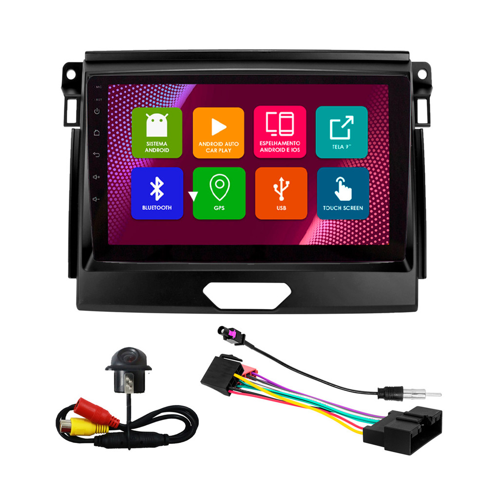 Kit Multimídia 9 Pol Ranger 2015 2016 2017 2018 2019 2020 2021 2022 Android 2Gb Ram 32Gb Flash Quad-Core 2 Din Preto