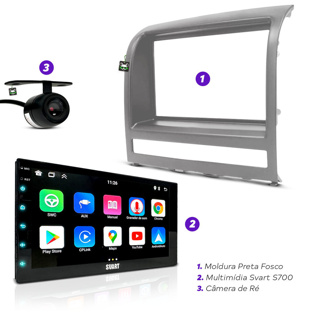 Bem-vindo a Koala Parts! A sua escolha certa para peças e acessórios automotivos - Há mais de 10 anos oferecendo qualidade e confiança. Kit Central Multimidia Android 2 Din 7 Pol + Câmera de Ré + Moldura KIT MULTIMÍDIA COMPLETO! Inclui uma Central Multimídia Android 13 de última geração, Câmera de Ré para auxiliar na sua segurança e Moldura Prata para um acabamento impecável. COMPATÍVEL COM: Fiat Siena - 2008 a 2012 Palio - 2008 a 2012 >> Central Multimídia Android 2 Din 7 Polegadas Tela de Vidro Wifi GPS S700 Svart << Uma Central Multimídia reconhecida pela qualidade e por todas as funcionalidades que fazem a diferença na hora de você adquirir um aparelho para seu carro - Sistema Android 13 nativo (Acesso a Play Store) - Cores vibrantes e imagens nítidas em um display de vidro IPS-LCD Full Touch de 9 polegadas, protegido pela durabilidade do Gorilla Glass! • TOUCH SCREEN 7" CAPACITIVA DE ÚLTIMA GERAÇÃO (Proteção Gorila Glass) • ANDROID 13 NATIVO (Acesso a aplicativos diversos e Play Store) • 2GB DE RAM • CARPLAY E ANDROID AUTO (Sem fio ou via cabo) EXPLORAÇÃO ILIMITADA Google Play Store e GPS integrado. BLUETOOTH Para músicas e chamadas, com microfone embutido. CONECTIVIDADE SEM FIO Wifi e Função RDS para transmissão de dados digital ESPELHAMENTO CARPLAY E ANDROID AUTO Também exibe a tela da multimídia em dispositivos externos. COMANDO SWC Com comando de volante para sistemas resistivos. >> Câmera de Ré Automotiva Borboleta Wide 110º com Marcador Distância << Ângulo de visão de 110°, resolução 420P e marcadores de distância para estacionar com tranquilidade e segurança. >> Moldura Prata 7 Polegadas 2 Din << Design moderno e sofisticado que se encaixa perfeitamente no painel do seu carro. ESPECIFICAÇÕES TÉCNICAS: MULTIMÍDIA S700 - Sistema Operacional: Android SV13.1 - Processador: Quad-CORE (Tablet) - Memória: RAM 2GB / ROM 32GB - Função Wifi - Função RDS: sistema de transmissão de dados digital - Função CAR PLAY / Android Auto: Wireless ou via cabo - Resolução HD: 1280x720 - Display: IPS-LCD FULL TOUCH (CAPACITIVA) HD - Proteção de Tela Gorilla Glass - Bluetooth: Música e Ligação (microfone interno) - Espelhamento: Exibe a tela da multimidia em uma tela externa ligada na saída de vídeo RCA - Configuração: Especial pra molduras 7 polegadas - Conector: ISO, com fusível de proteção - Potência: 4x25W RMS – 50W PMPO - Sintonizador: FM1, FM2, FM3 com até 54 posições de salvamento de estação - Volume: 0~40 - Ratio: 60dB - Equalizador: Usuário, Padrão, Rock, POP, Ao vivo, Eletrônica, Clássica, Suave, Jazz - Áudio: Equalizador gráfico digital, LOUND, Aumento de GRAVE - Fader Digital: Localização precisa do foco de som - IR Controle Remoto: não tem - Compatibilidade de áudio: MP3/MP2/ WAV/WMA/AAC/AMR/FLAC/M4A/OGG/RA /APE - Compatibilidade de vídeo: 3G2/ASF/AVI/DivX/mkv/MOV/Mp4/MPG/TS/WMV/VOB/MTS/WEBM/M4VRMVB/FLV/H.264 - Apps: Google Play. - GPS integrado - Microfone: externo Entrada Traseira: - Ré (RCA) - CVBS IN (RCA) - MIC IN (P2) - GPS (Coaxial) - Áudio R+L (RCA) ** Não possui entrada frontal nem para cartão de memória! Saída Traseira: - RCA: 2 ÁUDIO / 1 VÍDEO / 1 SUB - SWC (Comando de volante): Sistema resistivo. ** Pode haver necessidade de utilizar um resistor de 1K (Ohms) em paralelo. Resistor NÃO INCLUSO. CÂMERA BORBOLETA WIDE - Sistema: PAL/NTSC - Resolução: 420p - Ângulo lente WIDE: 110° - Classificação: ip67 (resistente a água) - Voltagem: 12V DC - Voltagem trabalho: 10.8 ~ 15.5V DC - Potência: 860mW - Alimentação extra no cabo de vídeo para facilitar a instalação - Chip de frequência que traz maior nitidez da imagem. - Proteção contra interferência magnética MOLDURA – Padrão: 2 din – Tamanho: 7 polegadas – Material: ABS – Cor: Prata CONTEÚDO DA EMBALAGEM: • 01. Kit Central Múltimidia Android 7" S700 Svart • 01. Câmera Ré Borboleta • 01 Moldura 2 Din 7 Polegadas Prata • Acessórios de instalação Recomendamos que a instalaçãos seja feita por um profissional e não nos responsabilizamos pelo mal uso do produto.