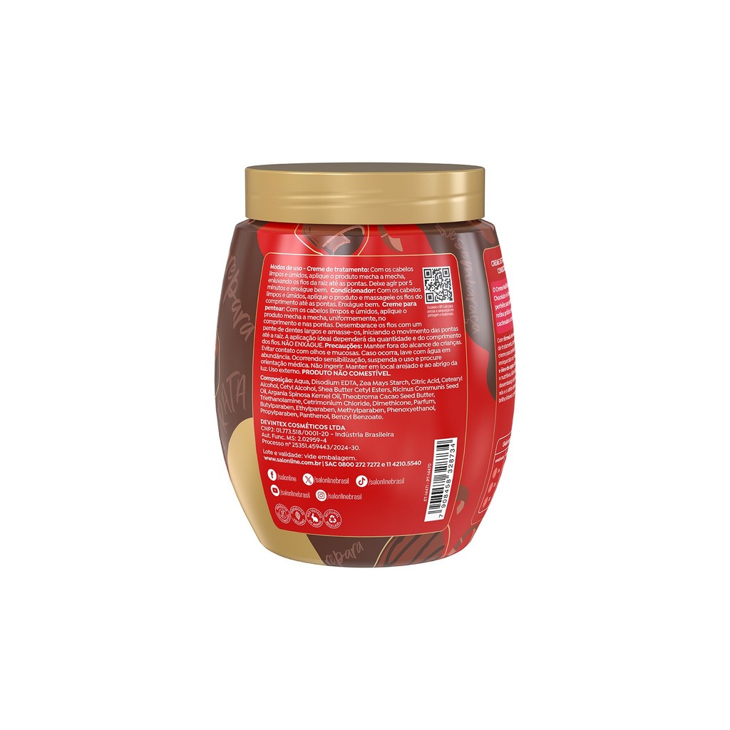 O kit contém 1 Creme de Tratamento Multy Chocolate Hidro Nutrição 1kg e 1 Óleo Perfumado Cabelo e Corpo Multy Chocolate 120ml, ideal para hidratar, nutrir e controlar a porosidade dos fios. Promovendo nutrição e brilho, deixando os cabelos com cheirinho de chocolate. <>INDICAÇÕES$& Para quais tipos de cabelo? Cabelos Cacheados e Crespos. Qual a indicação? Cabelos desidratados, desnutridos, com porosidade e com frizz. Para pele ressecada. Pode usar a partir de quantos anos? A partir de 12 anos. <>ATIVOS$& Quais os principais ativos? Creme de Tratamento 3 em 1 Cachos dos Sonhos Multy Chocolate e Óleo Perfumado Cabelo e Corpo Multy Chocolate Manteiga de Cacau: nutre profundamente, suaviza os fios e combate o ressecamento. Óleo de Argan: evita a perda de água natural dos fios, promove hidratação e nutrição. <>MODO DE USO$& Qual a melhor forma de usar? Creme de Tratamento 3 em 1 Cachos dos Sonhos Multy Chocolate Creme de tratamento: Com os cabelos limpos e úmidos, aplique o produto mecha a mecha, enluvando os fios da raiz até as pontas. Deixe agir por 5 minutos e enxágue bem. Condicionador: Com os cabelos limpos e úmidos, aplique o produto e massageie os fios do comprimento até as pontas. Enxágue bem. Creme para pentear: Com os cabelos limpos e úmidos, aplique o produto mecha a mecha, uniformemente, no comprimento e nas pontas. Desembarace os fios com um pente de dentes largos e amasse-os, iniciando o movimento das pontas até a raiz. A aplicação ideal dependerá da quantidade e do comprimento dos fios. Não enxágue. Óleo Perfumado Cabelo e Corpo Multy Chocolate Cabelo: Com os cabelos úmidos ou secos, aplique o óleo nas mãos e espalhe uniformemente entre os fios. Pode ser utilizado como protetor térmico antes do uso de ferramentas de calor, perto da raiz para umectação dos fios ou ao longo do dia para perfumar os cabelos. Corpo: Espalhe pelo corpo e nas regiões mais ressecadas, como cotovelos e pernas. <>CARACTERÍSTICAS$& É produto vegano? Os produtos são veganos É liberado? Os produtos não são liberados.