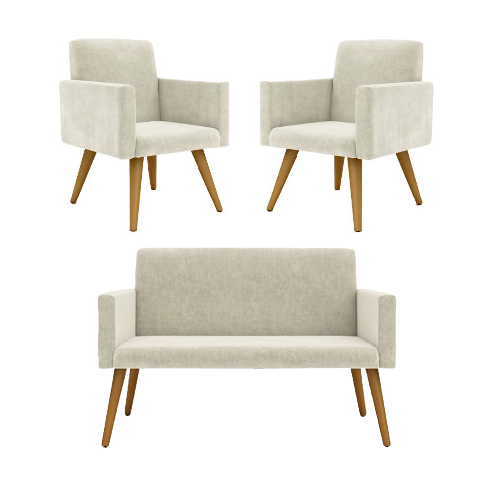 Kit Namoradeira + 02 Poltronas Decorativas Nina Promoção