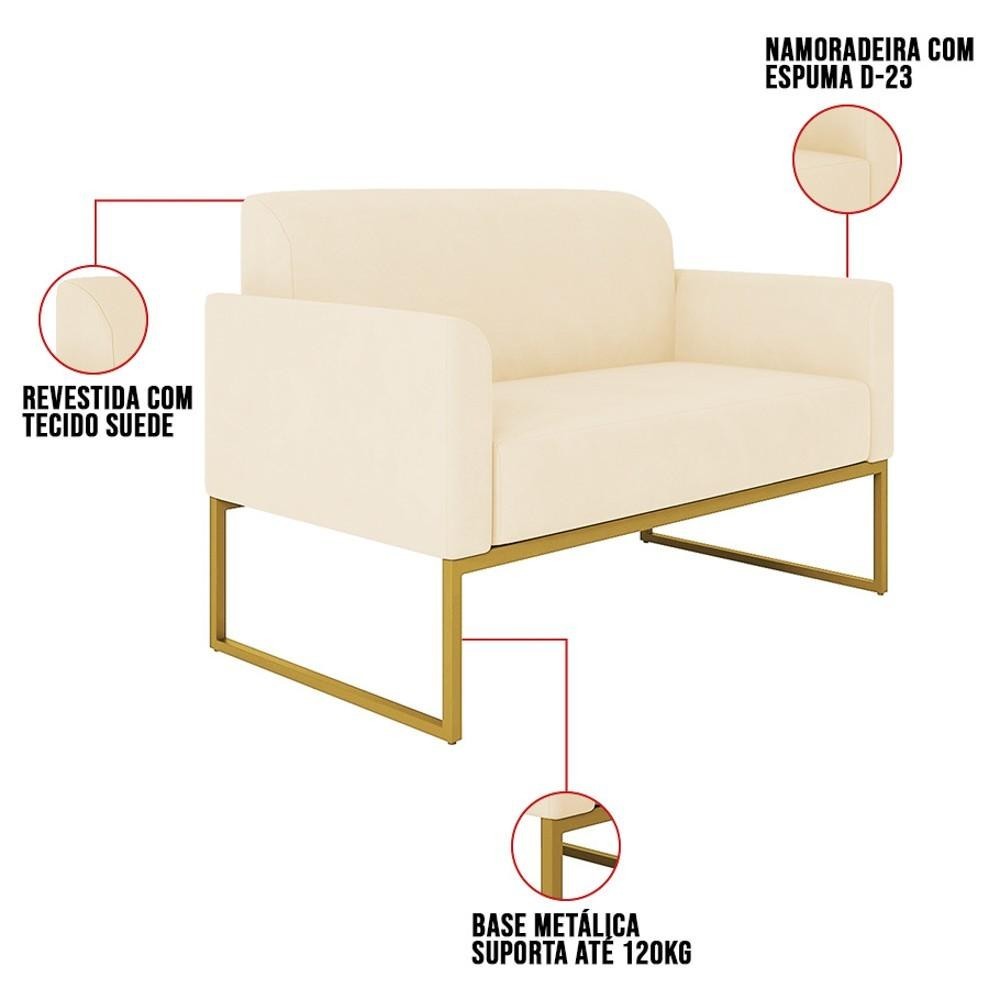 Kit Namoradeira e 1 Poltrona Decorativa Base Industrial Dourada Maressa S03 Suede Bege - Ibiza