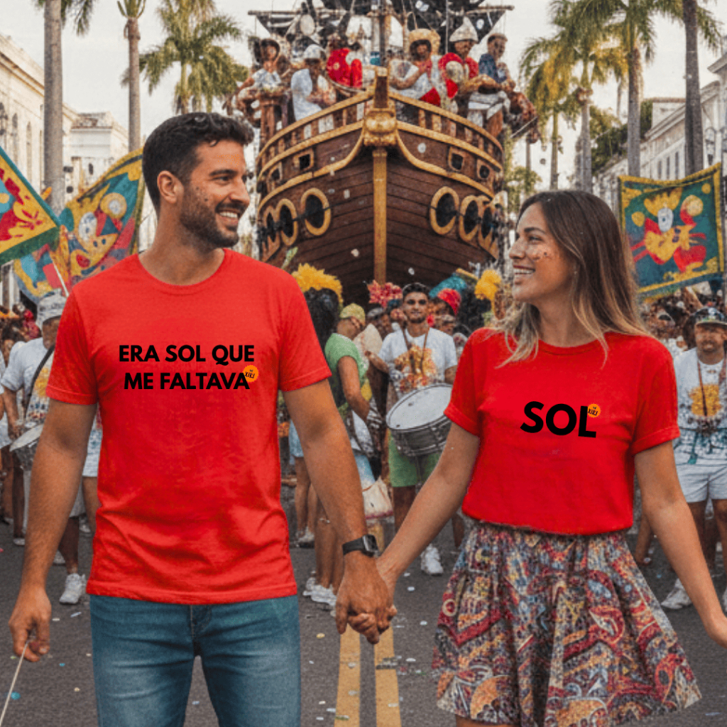 Kit Namorados casal 2 Camisetas "Era sol que me faltava - SOL" Carnaval Divertida fantasia