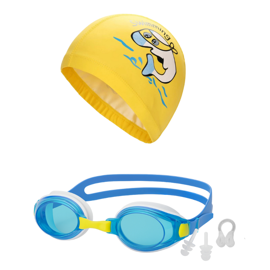 Kit Natação Infantil Óculos Touca PU com Protetor Nasal e Auricular