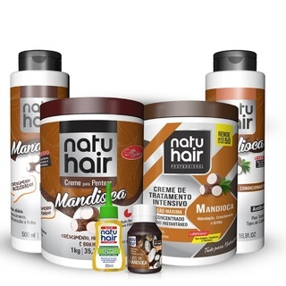 Kit NatuHair Mandioca: Shampoo, Cond., Creme, Tratamento, Óleo Capilar e Reparador de Pontas