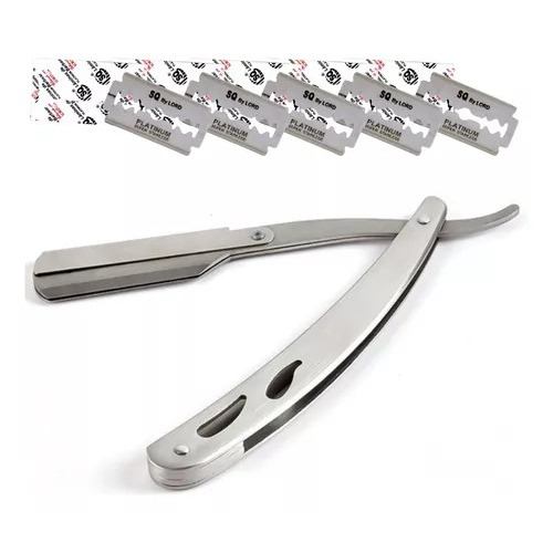 Kit Navalha + Lamina Aço Inox Barbeiro Profissional Iniciante Acabamento Cabelo Barba