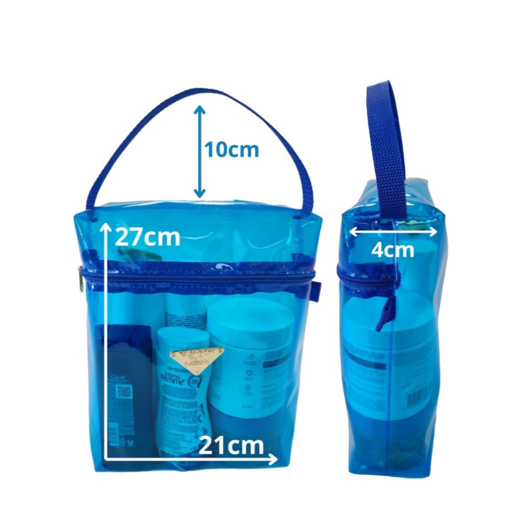 PRINCIPAL DÚVIDA -Posso escolher a cor? Nos envie no chat as cores de sua preferência que enviaremos de acordo com o nosso estoque, para melhor satisfação. Necessaire Organizador Frasqueira transparente e impermeável, confeccionadas em material de alta qualidade e ótimo acabamento. Fechamento em zíper e alça para segurar ( de acordo com as fotos ) Fácil de limpar e multiuso, pode ser utilizada para guardar maquiagens, estojo, produtos de higiene pessoal, roupas, produtos molhados etc MEDIDAS: Altura 27cm x altura 21cm x largura 4cm alça 10cm QUALQUER OUTRA DUVIDA - Nos chame no CHAT DA LOJA que vamos te atender.