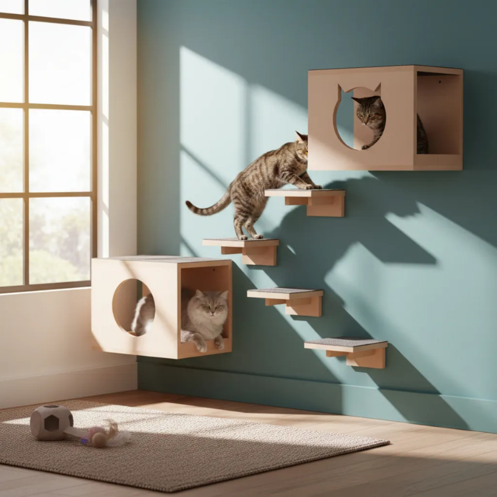 Kit Nicho Casinha Playground Reforçado MDF 15mm Premium Gatos Arranhador Prateleira Gatil Gatificação Toca Parquinho