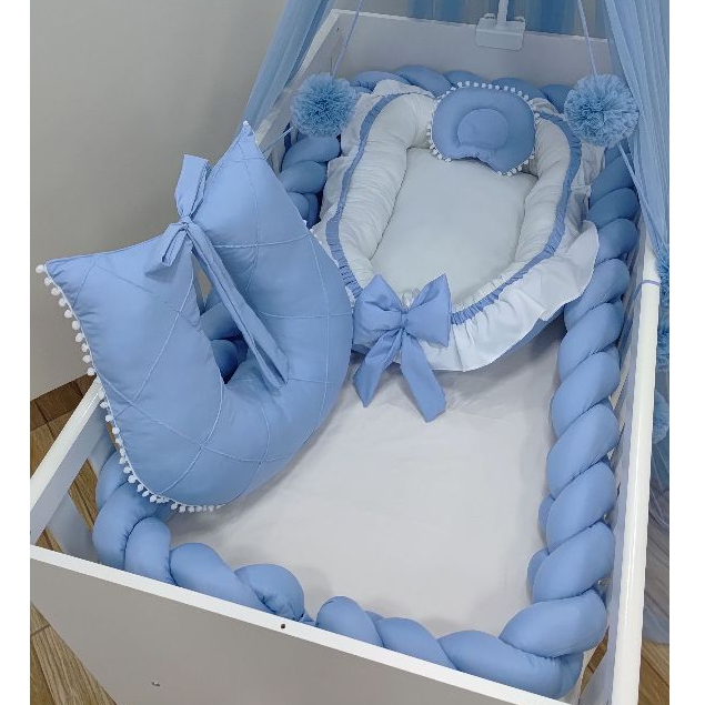 Kit Ninho Redutor de Berço + Almofada Amamentação + Trança Para Berço 4m Micropercal 200 Fios