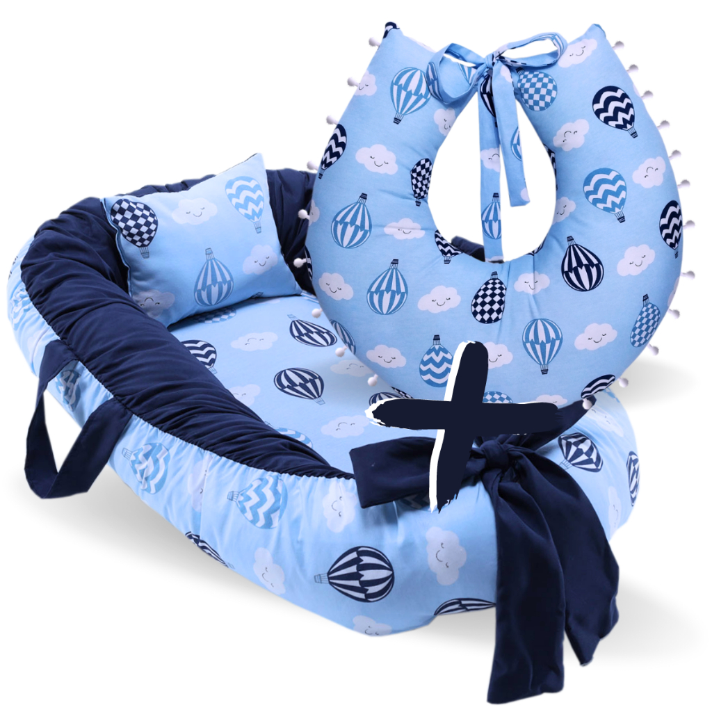 Kit Ninho Redutor para Berço + Almofada Amamentação para Amamentar Balão Azul 100% Algodão