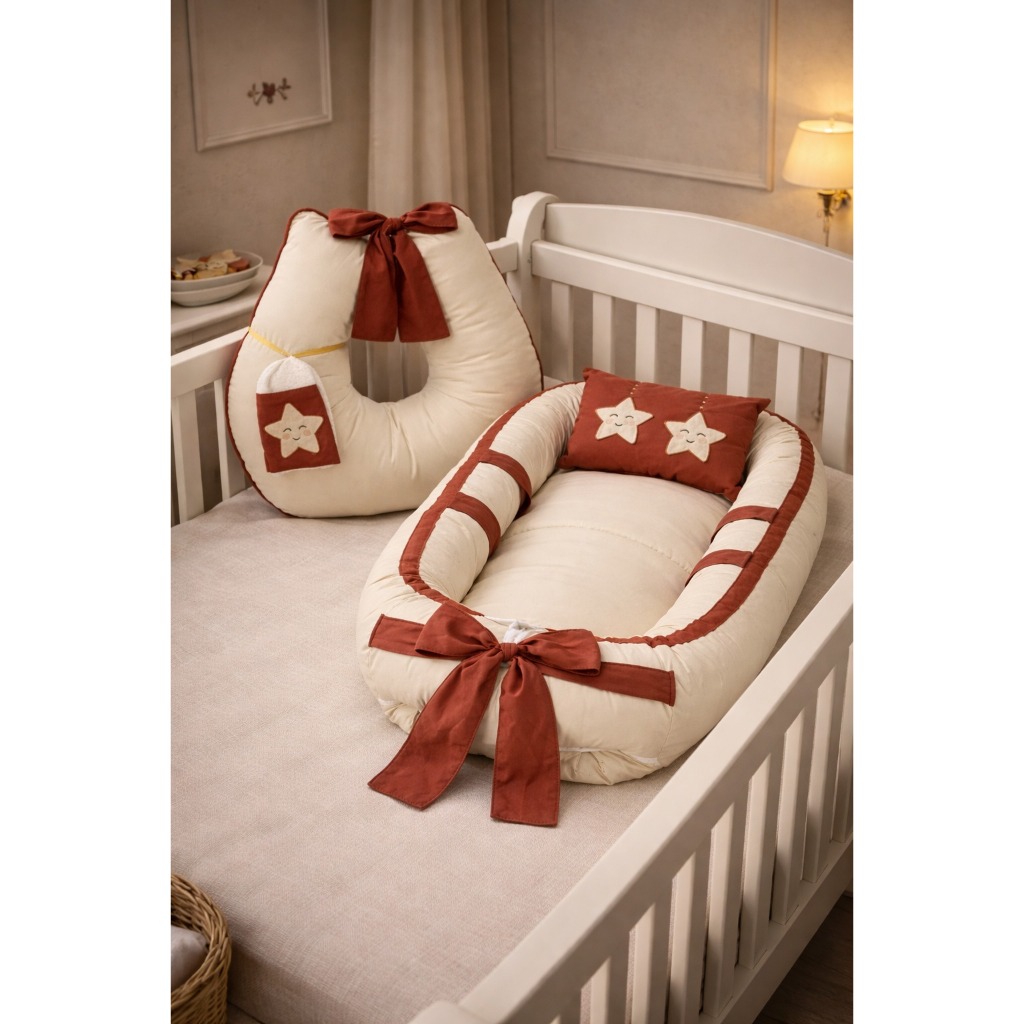 Kit Ninho Redutor Travesseiro Almofada de Amamentação Toalha de Boca Bordados Bebê