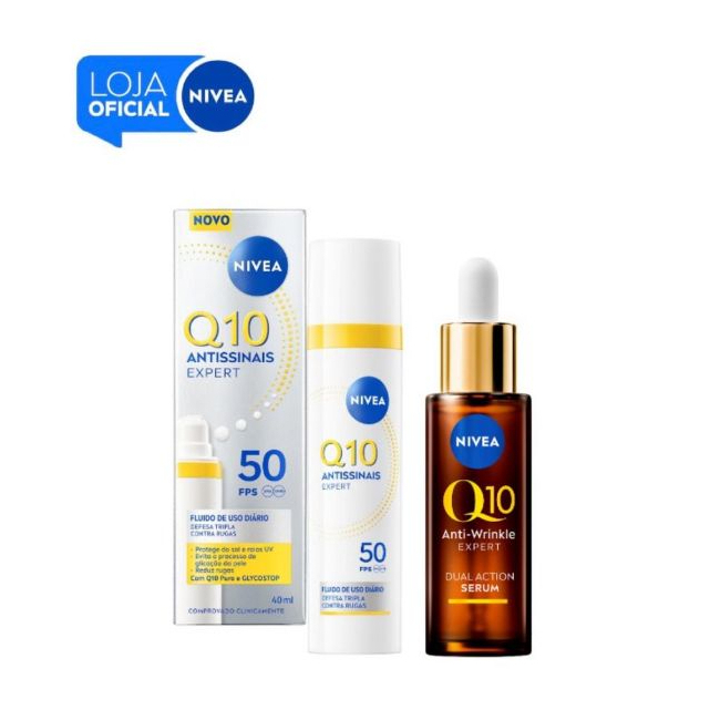 KIT NIVEA Q10 Sérum Antissinais Expert Dupla Ação 30ml + NIVEA Q10 Antissinais Fluido Facial FPS50 40ml BBB 26