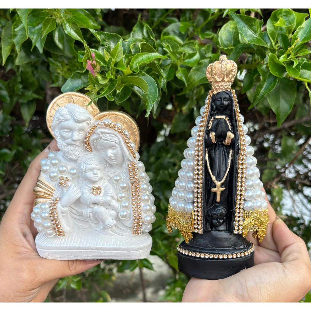 P&A Artigos Religiosos Somos uma loja que atua no mercado online a 4 anos, e enviamos pacotes de amor e fé pela virgem Maria para todo Brasil, nosso trabalho é sempre priorizar nossos clientes e amigos. Kit Nossa Senhora Aparecida e Sagrada Familia 15cm, um ótimo presente para dar em datas especiais, como para pessoas especiais familiares e amigos feita a mão pelos nossos colaboradores. - Material Gesso Perolas Pintura tinta resinada