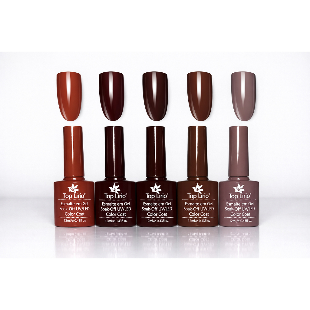 Esmalte em Gel Lirió 12ML Marca de esmaltes que alta tecnologia, qualidade e cores únicas e exclusivas. As tonalidades acompanham as principais tendências de coloração no mercado da beleza e da moda, como os tons com fundo rosado, laranjado, marrom e acinzentado, que estão em alta no mundo fashion. Cada esmalte com pincel aplicador, os produtos possuem acabamento cremoso, efeito verniz, brilho intenso, alta durabilidade e cor uniforme para as unhas. Produtos de ótima qualidade. Contém: 5 unidade de esmalte em gel seca na cabine Led e UV Lirió18ML CADA KIT