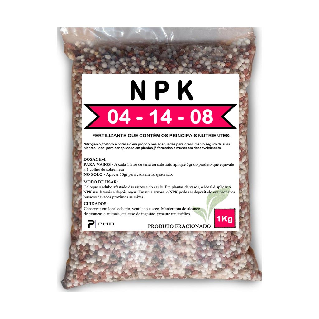 Embalagem fracionada KIT 1 KG DE CADA PRODUTO. Aplicação em vasos; • Quantidade máxima. - Aplicar 1 colher de chá(5g) para cada 1 Litro de terra ou substrato. • Quando utilizar. - Antes do período de florescimento e após a colheita ou poda, para compensar as perdas de nutrientes. - Deve ser utilizado quando a planta apresentar sinais de fraqueza, como dificuldade de crescimento e descolorações incomuns. Fertilizante que contém os principais nutrientes: Nitrogênio, fósforo e potássio em proporções adequadas para um crescimento seguro de suas plantas. Ideal para ser aplicado em plantas já formadas. Por se tratar de uma adubação de cobertura, proporciona uma intensificação no vigor, qualidade e resistência do vegetal. Pode ser usado em todos os tipos de plantas. (N) Nitrogênio- é responsável pela formação e crescimento da parte verde das plantas (caule e folhas). (P) Fosforo- garante o surgimento de flores e frutos. (K) Potássio- responsável pela formação de raízes, fortifica a planta, para combater pragas e doenças, e resistir á variações de clima, até a seca.