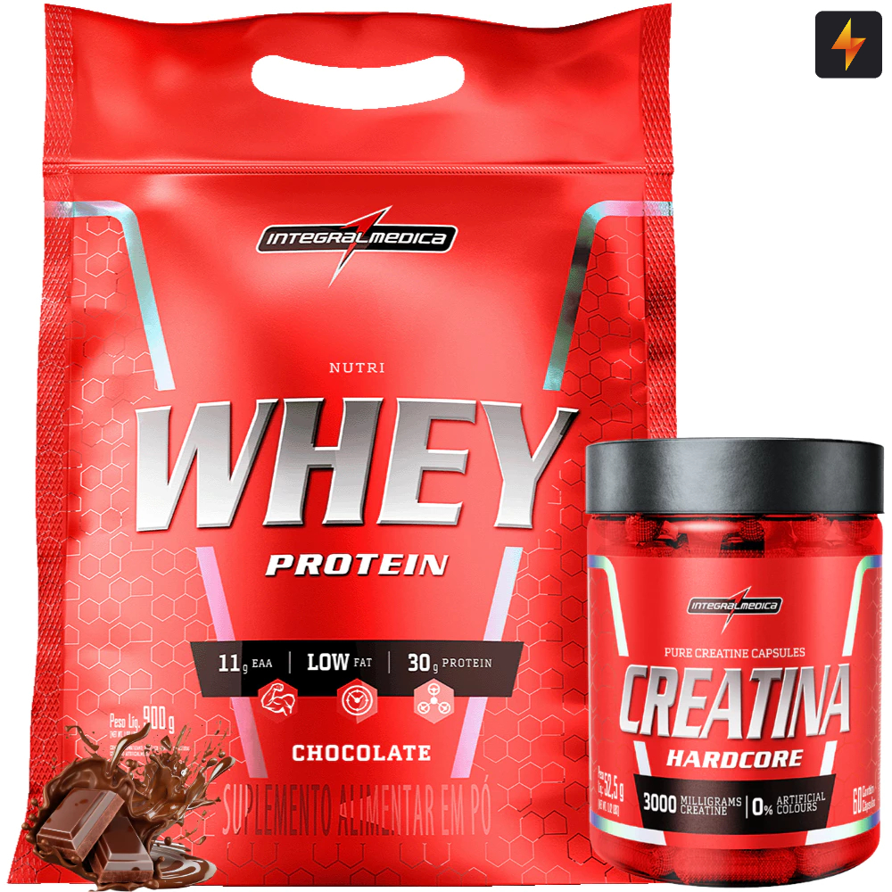 Kit Nutri Whey Protein Refil 900g + Creatina Hardcore 60 Cápsulas