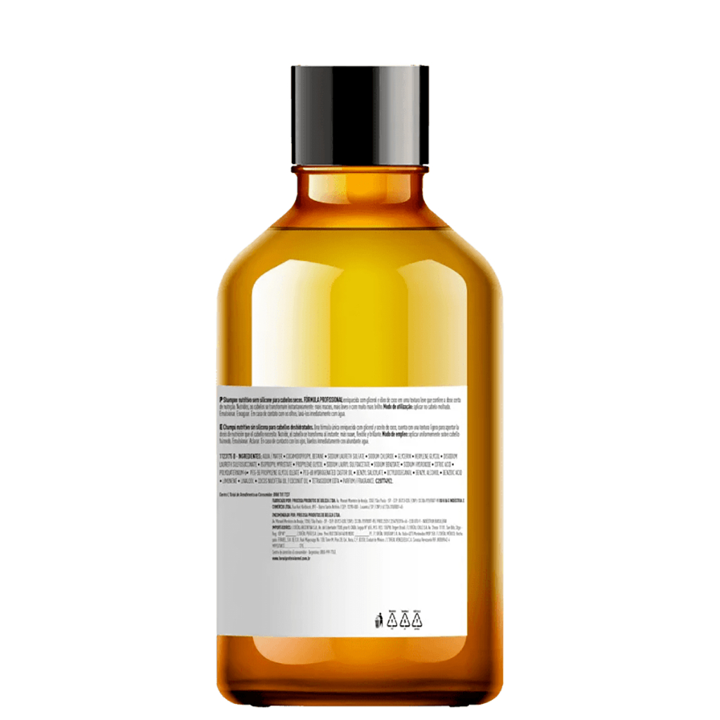Este Kit Contém:1 Shampoo Serie Expert Nutrifier 300ml - L'oreal Professionnel 1 Condicionador Serie Expert 200ml - L'oreal Professionnel APRESENTAÇÃO DA LINHA L´ORÉAL PROFESSIONEL SERIE NUTRIFIER Linha para cabelos ressecados. A linha L'Óreal Professionnel Serie Expert Nutrifier proporciona nutrição e hidratação à fibra capilar, para fios mais lindos e macios. Densevolvida para combater o ressecamento dos fios. L'Óreal Professionnel Serie Expert Nutrifier Duo é uma linha profissional desenvolvida com óleo de coco. Repara a fibra do cabelo, que fica ressecada por falta de umectação e nutrientes. Oferece limpeza suave e não pesa sobre o cabelo por não possuir silicone. RESULTADOS Cabelo nutrido, hidratado, bonito, macio e saudável. L'Óreal Professionnel Serie Expert Nutrifier - Shampoo 300ml Limpa suavemente e ajuda a nutrir os fios. MODO DE USO: Coloque uma pequena quantidade de shampoo sobre o cabelo molhado. Massageie até surgir espuma. Em seguida, enxágue. L'Óreal Professionnel Serie Expert Nutrifier - Condicionador 200ml Proporciona hidratação profunda e nutrição, além de selar os fios. MODO DE USO: Aplique o condicionador em todo o comprimento e pontas. Deixe agir por 2 a 3 minutos e, em seguida, enxágue bem.