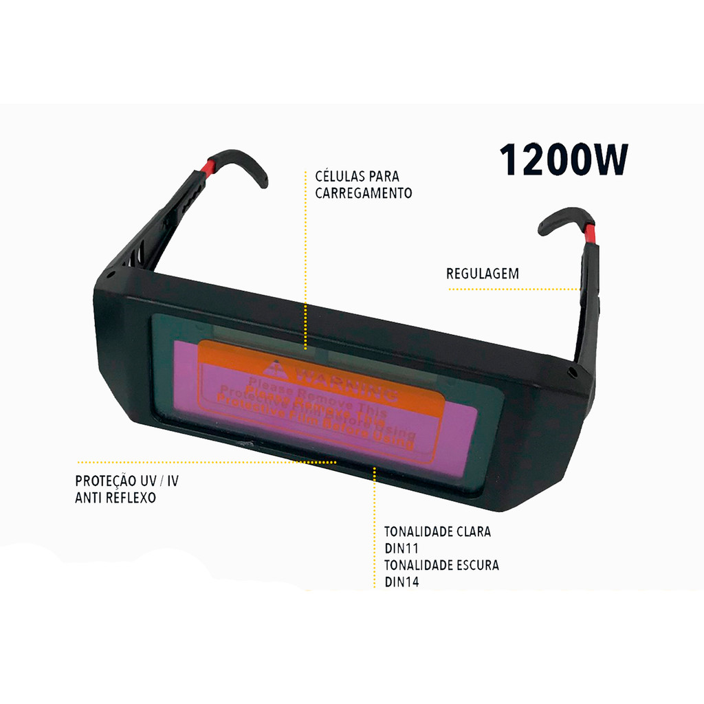 DISTRIBUÍDO POR ISMAFER FERRAMENTAS Óculos De Solda Para Soldador C/ Escurecimento Automático Óculos de escurecimento automático é indicado para uso esporádico ou hobby com proteção tonalidade do escurecimento fixo DIN 11. Ideal para pontos e pequenas solda, onde a máscara é incomoda. VANTAGENS: - Anti ultravioleta, radiação infravermelha, anti-reflexo. - Resistência ao impacto e resistência ao calor. - Durável por longo período. ITENS INCLUSOS: - 01 Óculos de soldagem. FICHA TÉCNICA: - Raio ultravioleta através de relação: <0.0001% (210-365nm). - Raio infravermelho através da relação: <0.01% (780-2000nm). - Temperatura de utilização: -10ºC à 60ºC. - Restaurar o tempo: 0.3-0.7ms, DIN 3/11. - Tempo de resposta: 0.5 ms. - Função: Anti-reflexo. - Opacidade: 9-13. Marca: The Black Tools Modelo: BTO1000 Garantia: Até 03 meses pelo Fabricante + - Esquadro Magnético até 12Kg - GALZER-32 Oferece precisão em ângulos de 135, 90 e 45, segurando a peça para você poder pontear com precisão e segurança Características: - Maior precisão na soldagem - Uso indicado para serralherias - Utilizado em soldagem, montagem, estruturas, grades - Ponteamento de solda rápido e preciso - Menor mão de obra - Diminui o risco de acidentes Especificações Técnicas: - Capacidade de carga para 12Kg Conteúdo da Embalagem: - 2 Unidade de Esquadro Garantia: 6 Meses pelo fornecedor SKU: KIT23409-23083-2 DISTRIBUÍDO POR ISMAFER FERRAMENTAS