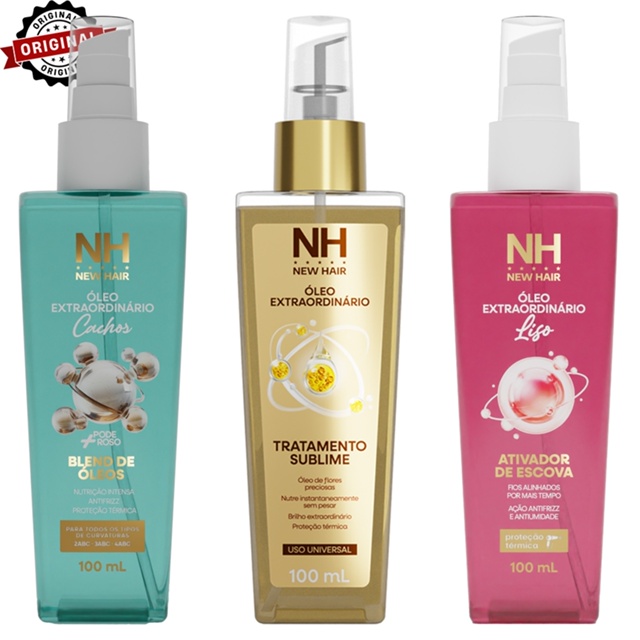 | Kit Óleo Extraordinário Para Cabelos Lisos e Cacheados NEW HAIR Pro... este produto | R$ 57,90 | 45% | 4.9/5 | 164 |