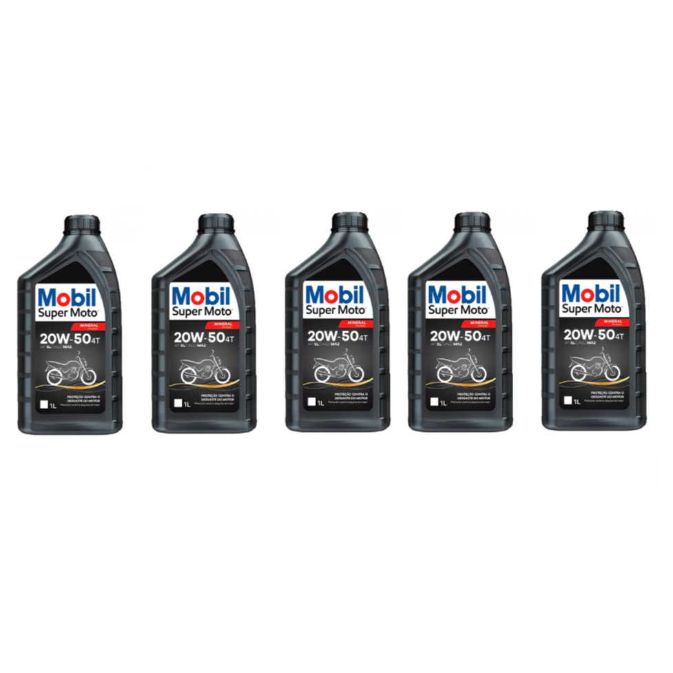 Este kit completo é ideal para quem busca eficiência, proteção e máxima performance na manutenção da motocicleta. Inclui produtos de qualidade reconhecida, projetados para atender às necessidades de motores sob condições exigentes. Confira os detalhes: Podendo conter: 1 x 3 Litros 20W50 Mobil 1 x 5 Litros 20W50 Mobil 1 x 10 Litros 20W50 Mobil 1 x 4 Litros 20W50 Mobi 1 x 12 Litros 20W50 Mobil O óleo Mobil Super Moto 4T é pioneiro no Brasil, formulado especialmente para motocicletas. Reconhecido e recomendado por especialistas, oferece proteção incomparável ao motor, transmissão e embreagem, mesmo em condições extremas de operação. Principais Benefícios: Desenvolvido especificamente para o clima e combustíveis brasileiros. Alta resistência à oxidação e proteção superior contra o desgaste. Excelente desempenho sob cargas pesadas. Protege o disco de embreagem, evitando patinação e garantindo maior aproveitamento de potência. Mobil Super Moto 4T é a solução ideal para quem deseja confiabilidade e durabilidade em sua moto. **Atenção a viscosidade recomendado ao ano e modelo da sua moto, tire suas dúvidas antes de efetuar seu pedido**