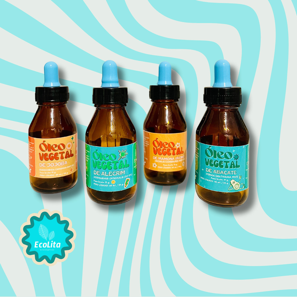 Cronograma de óleos vegetais | Força na peruca | Alecrim, Rícino, Jojoba e Abacate. Benefícios: Esse kit contém 1 óleo de Rícino, 1 óleo de Alecrim, 1 óleo de abacate e 1 óleo de Jojoba. Que são poderosos para ajudar no tratamento contra quedas, caspa, oleosidade, e sensibilidade no couro cabeludo. Além de fortalecer o cabelo da raíz as pontas, podendo ajudar no crescimento capilar. Deixando os cabelos mais nutridos e hidratados! Esses óleos são tudo de bom! Os óleos podem ser usados 1 dia sim, outro não. Você pode ir revezando entre eles. Sugestão de uso: Aplicar sobre a pele ou couro cabelo seco à noite. No dia seguinte não esqueça de lavar a pele e/ou cabelo, hein? Esse kit contém 1 óleo vegetal prensado a frio de Alecrim, 1 óleo vegetal prensado a frio de Rícino, 1 óleo vegetal prensado a frio de Jojoba e 1 óleo vegetal prensado a frio de abacate. Nossos Óleos são prensados a frio e puros. Validade de 1 ano. Após aberto, consumir em até 60 dias. Com amor, ecolita!