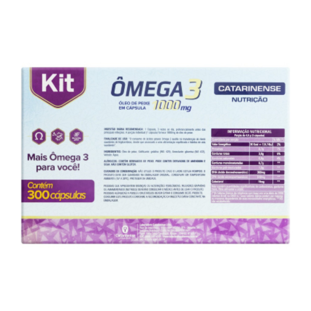 | Kit Ômega 3 1000mg Com 300 Cápsulas Catarinense este produto | R$ 124,90 | 11% | 5.0/5 | 4 |