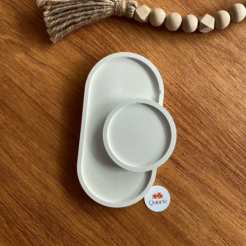 OBSERVAÇÕES IMPORTANTES • Produto artesanal — pequenas variações são parte do charme de cada peça. • Não indicado para áreas molhadas. Este kit é composto por: 1 Bandeja Oval 18cm 1 Bandeja redonda 8cm CUIDADOS COM O PRODUTO • Limpe apenas com pincel seco (pode ser de maquiagem) para retirar a poeira. • Não utilize força ou produtos químicos/abrasivos. • Evite contato com água para preservar a durabilidade. 💬 Qualquer dúvida, estamos à disposição no chat.