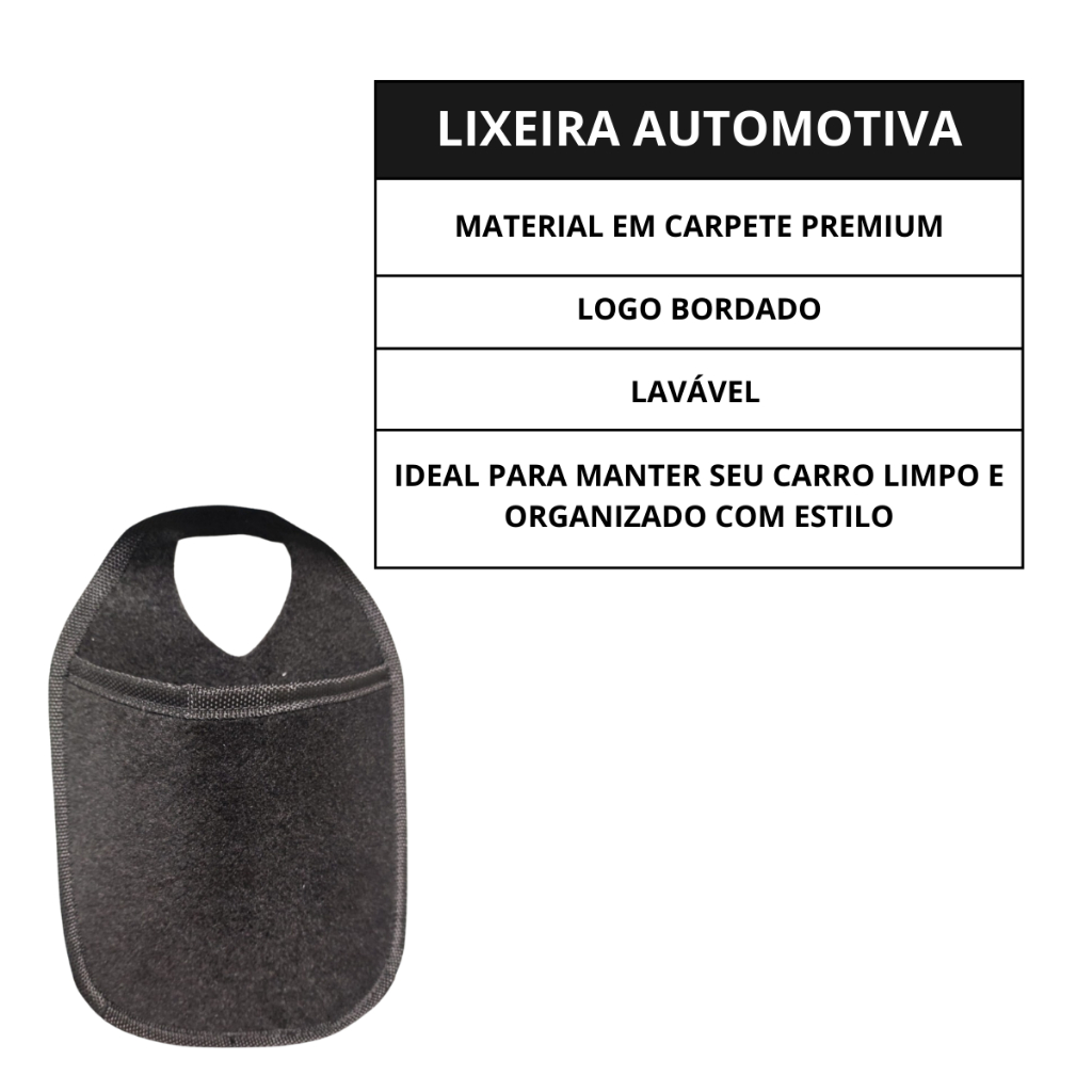 Mantenha seu carro organizado, limpo e com a manutenção em dia com este kit de alta qualidade. Perfeito para motoristas que valorizam a praticidade e um interior impecável. O que você recebe no Kit: 1. Bolsa de Ferramentas Automotiva Chega de ferramentas soltas, panos e cabos espalhados! Esta bolsa robusta e compacta foi projetada para organizar tudo que você precisa. Organização Máxima: Espaço interno amplo para guardar triângulo, cabos de chupeta, chave de roda, alicates, lanterna, luvas e outros itens de emergência. Material Premium: Confeccionada com carpete premium na cor preta, resistente com costura reforçada para garantir durabilidade e proteger suas ferramentas. Símbolo bordado com o logo da marca do veículo. Compacta e Discreta: Seu design permite que seja guardada facilmente no porta-malas, possui velcro em baixo e atrás para melhor fixação. 2. Lixeira Automotiva de Câmbio Mantenha a cabine do seu carro livre de papéis, embalagens e lixo pequeno. Praticidade e Higiene: Ideal para ser pendurada no câmbio ou em outros locais estratégicos do veículo, mantendo o lixo fora do campo de visão. Material de Fácil Limpeza: O mesmo material em carpete, robusto e discreto, fácil de limpar e reutilizar. Interior Impecável: Um acessório que faz toda a diferença na aparência e limpeza interna do seu veículo. Também com a logo do seu veículo bordada. 3. BRINDE EXCLUSIVO: Aromatizante Automotivo Deixe seu carro com um aroma agradável e duradouro. Um presente nosso para completar o cuidado com seu veículo! Por Que Comprar Este Kit? Segurança e Emergência: Tenha suas ferramentas de emergência sempre à mão e organizadas. Estilo e Discrição: Ambos os itens possuem um acabamento em preto, discreto e elegante, que combina com o interior de qualquer carro. Custo-Benefício: Leve dois itens essenciais de organização + um brinde por um preço especial. Compatibilidade: Serve para veículos de diversas marcas. Compre agora e sinta a diferença de ter um carro mais limpo, organizado e pronto para qualquer imprevisto na estrada!