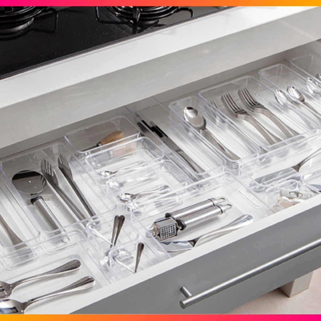 Kit Organizador de Talher 5 Divisórias + Porta Facas Para Gaveta + Organizador Utensílios Grandes