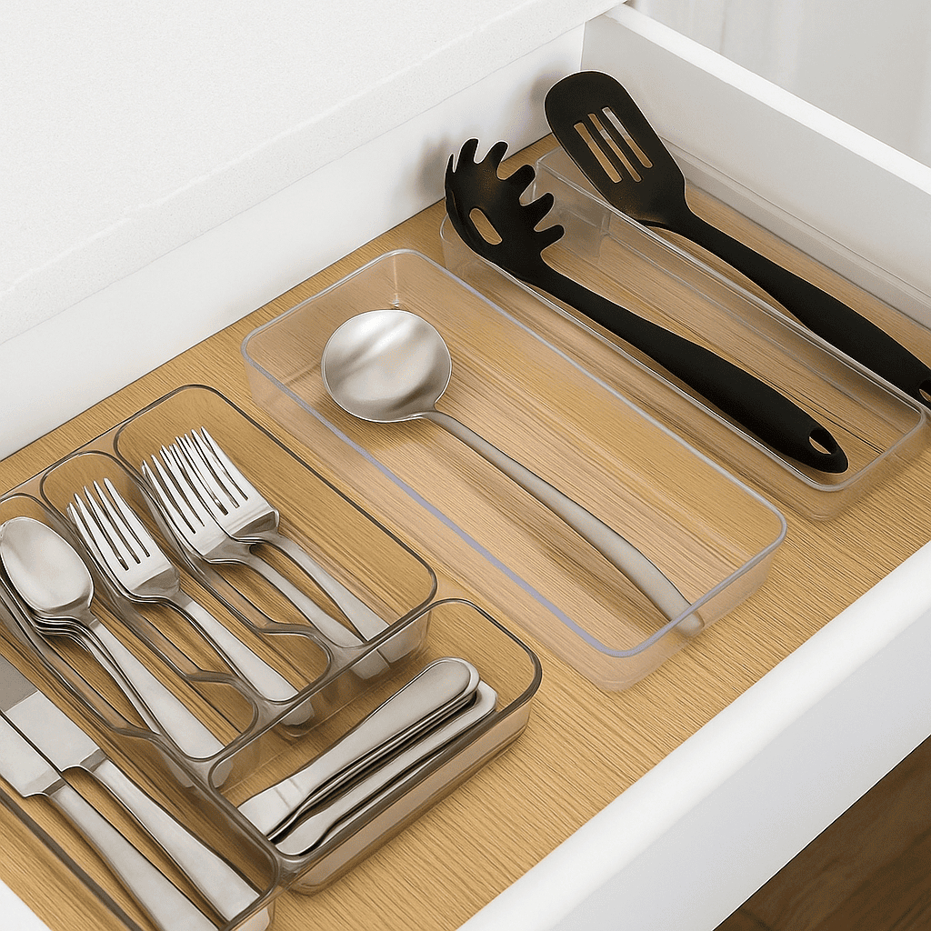 Kit Organizador de Talher 5 Divisórias + Porta Facas Para Gaveta + Organizador Utensílios Grandes