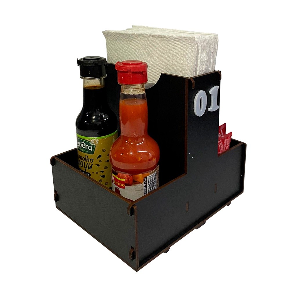 Kit Organizador para Bar e Restaurante Lachonete Galheteiro Porta Guardanapo e Molho em MDF
