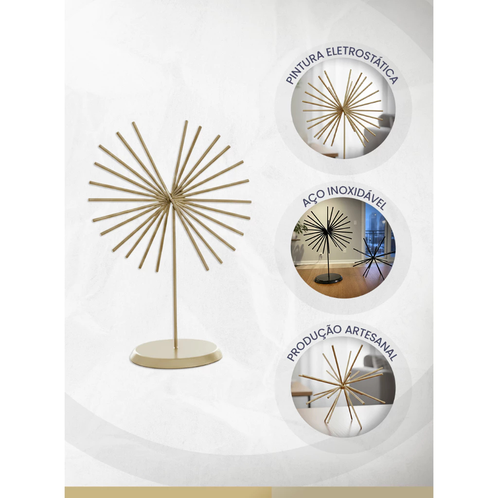 Kit Ouriço + Escultura Girassol Decoração Luxo Designer Moderno E Minimalista Para Sala E Escritório