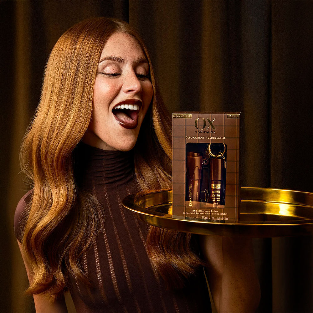 O Kit OX Mari Maria Óleo Capilar 15ml + Gloss Líquido Labial Chocolate Glow Duo é uma edição limitada que reúne cuidado capilar, hidratação e beleza labial em um só produto. O óleo capilar promove nutrição intensa, brilho e maciez, enquanto o gloss labial garante um acabamento glow sofisticado na tonalidade chocolate. Essa combinação prática traz glamour e tratamento em dose dupla para a sua rotina de beleza. Criado especialmente para proporcionar brilho e cuidado tanto aos cabelos quanto aos lábios, o kit ainda conta com um delicioso cheirinho de chocolate. Beneficios do Óleo Capilar:Nutrição intensa e brilho radiante para os fios;Cuidado capilar e beleza em um só kit;Fórmulas com ativos nutritivos e antioxidantes;Proteção térmica de até 230 °C, funcionando como um escudo diário ideal antes do uso de fontes de calor;Proteção UV para os fios, auxiliando na defesa contra danos solares;Selagem das cutículas e controle do frizz;Beneficios do Gloss Labial:Contém manteiga de karité, óleo de coco, ácido hialurônico e vitamina E, proporcionando hidratação, proteção e efeito glow.Inclui chaveiro decorativo, tornando o kit ainda mais especial e colecionável;Produto veganos e cruelty-free (não testados em animais);Ideal para complementar sua rotina de beleza;Lábios hidratados com efeito glow chocolate.Com um delicioso cheirinho agradável de chocolate. Modo de usar:Óleo Capilar: Aplique algumas gotas nas mãos e espalhe do comprimento às pontas, com os fios úmidos ou secos. Não enxágue.Gloss Labial: Aplique diretamente sobre os lábios limpos ou sobre o batom para intensificar o brilho e a hidratação. Sobre a marca: A OX Cosméticos está presente no mercado brasileiro desde 1995, oferecendo cuidado capilar de alta performance. Atualmente, seu portfólio inclui shampoo, condicionador e máscara de tratamento. A marca acredita que o essencial é o que fica — por isso, suas fórmulas contam com o Sistema OX Beleza Duradoura, uma tecnologia internacional exclusiva que promove hidratação acumulada e prolongada.