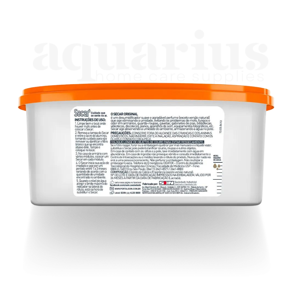 Linha Desumidificador Secar Original Como é bom respirar fundo e sentir a pureza do ar! a Secar é a marca querida dos brasileiros quando o assunto é evitar mofo em qualquer lugar, dos quartos à cozinha. mas a linha de produtos da secar vai além: odorizadores, difusores de aromas com variadas fragrâncias à sua escolha, absorvedores de odor e outros. tudo pensado para deixar os ambientes com uma atmosfera leve, limpa e saudável, como o seu lar merece ser, afinal faz bem estar em casa. Secar, cuidado que se sente no ar. A linha de desumidificadores Secar Original conta com uma linha de incrível de perfumes para sua casa, você os encontra aqui nas versões: Floral Kids Lavanda Natural Não perca tempo e adquira os desumidificadores da linha Secar, o seu lar é o seu mundo e a Secar ajuda você a cuida-lo =)