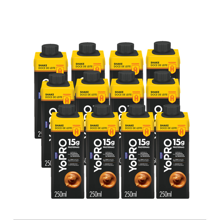 Kit com 12 unidades YoPRO Bebida Láctea UHT Doce de Leite Havanna 15g de proteínas 250ml Potencialize seus treinos com YoPRO Bebida Láctea UHT Doce de Leite Havanna 15g de proteínas 250ml.YoPRO é a marca especialista em criar produtos com alto teor de proteínas, práticos e deliciosos para quem busca uma rotina ativa e saudável. YoPRO é proteína, sabor e praticidade para sua rotina. Você pode consumir seu YoPRO Shake Proteico UHT 15g de proteínas a qualquer momento, seja como parte do seu café da manhã, como lanche entre as refeições ou antes e depois dos treinos. Sua fórmula prática e deliciosa permite que você o leve para onde quiser, seja na academia ou no trabalho.É essencial para você que busca um estilo de vida ativo e saudável, além de com o seu consumo de proteínas diárias, é um aliado para sua performance física e seu bem-estar, complementando a sua rotina de forma saudável e saborosa. YoPRO É MAIS PROTEÍNA, SABOR E PRATICIDADE PARA SUA ROTINA. Experimente e vá além!Ingredientes: leite parcialmente desnatado, concentrado proteico de soro de leite, cacau hidratado, amido modificado, concentrado proteico de leite, soro de leite em pó, enzima lactase, aromatizantes, estabilizantes celulose microcristalina, carboximetilcelulose, carragena, fosfato dipotássico e fosfato dissódico e edulcorante sucralose. NÃO CONTÉM GLÚTEN. ALÉRGICOS: CONTÉM LEITE E DERIVADOS. PODE CONTER SOJA.