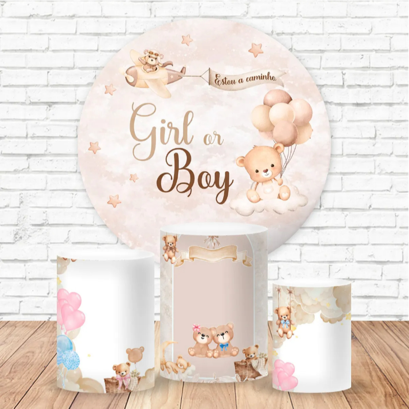 Kit Painel Capa Trio Cilindros Chá Revelação Bebe A Caminho