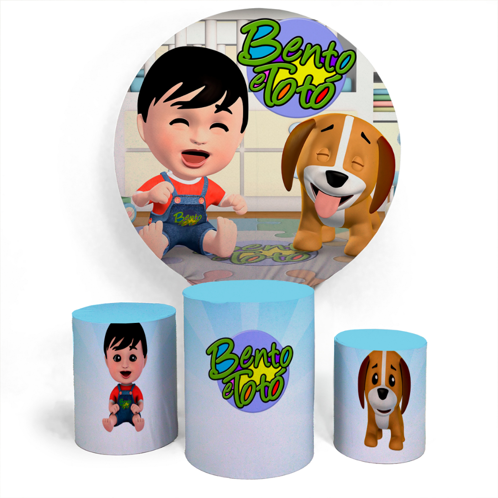Kit Painel Festa Capa Personalizada E Capa Conjunto Cilíndro Aniversário Infantil Bento e Totó