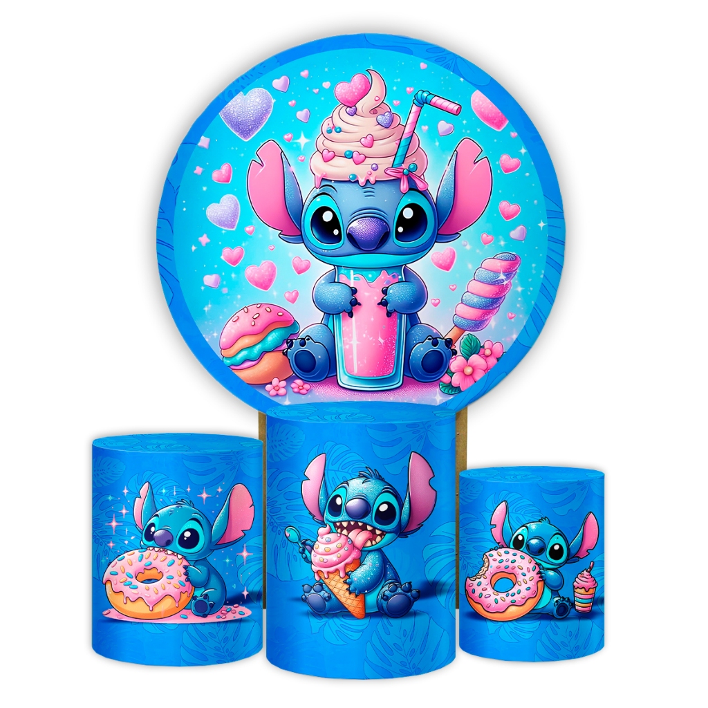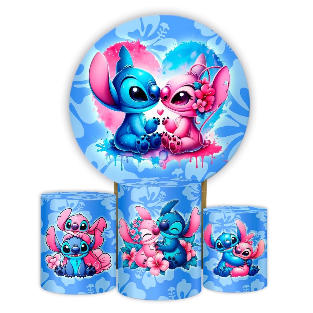 Kit Painel Festa Tema Stitch Sublimado Aniversário Capas Cilindros - Sistema Veste Fácil Decoração Infantil