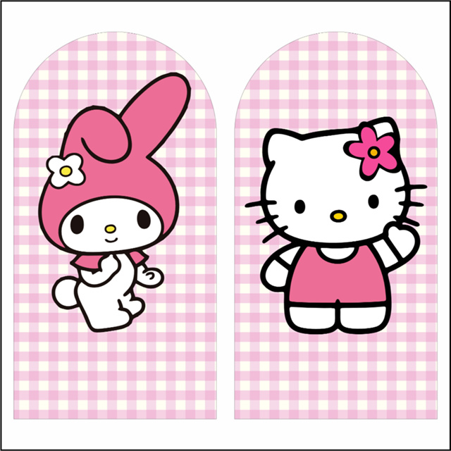 Kit Painel para Festas, Hello Kitty / My Melody, 2 Romanos 200x100 Com Elástico nas Bordas