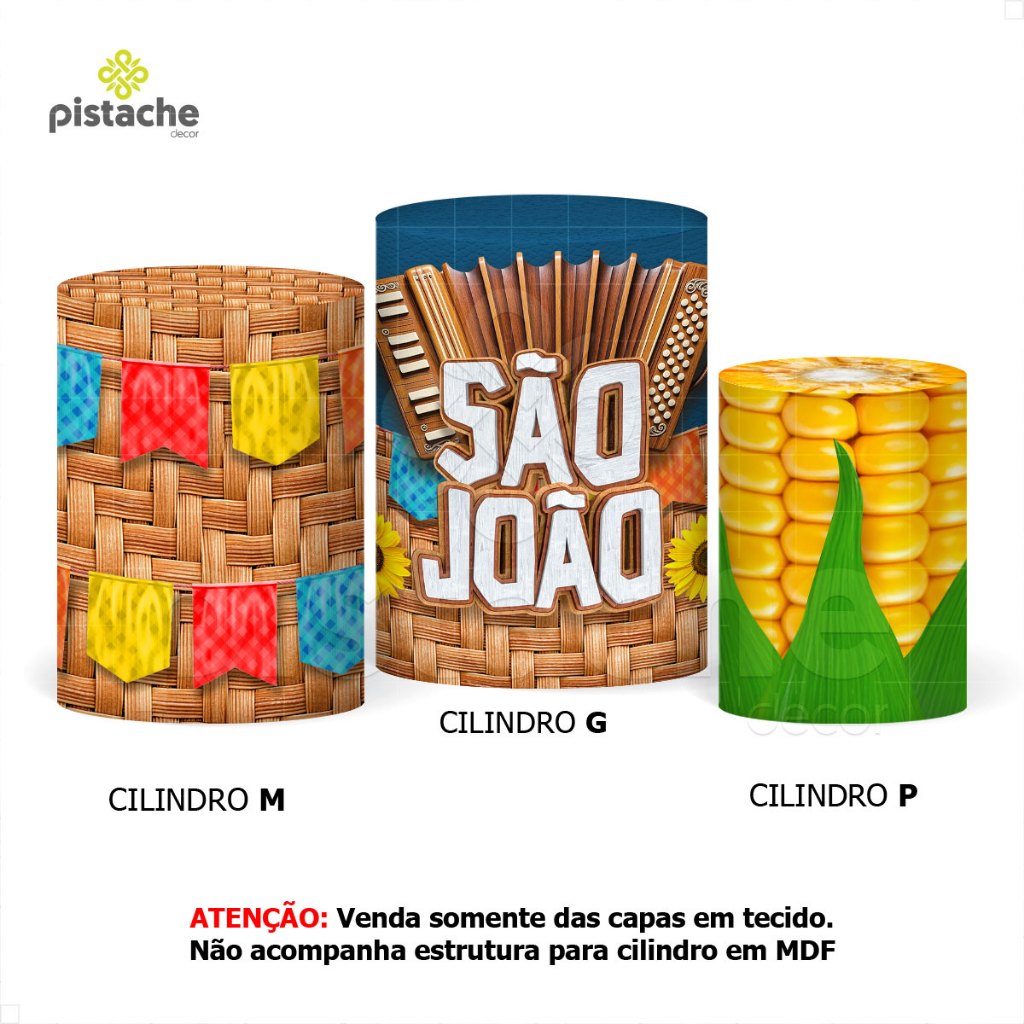 *** ATENÇÃO: NÃO FAZEMOS AJUSTES DE MEDIDA OU ARTE NAS CAPAS DE CILINDRO DESTE ANÚNCIO. VERIFIQUE AS MEDIDAS ANTES DE FINALIZAR A COMPRA *** >>>ATENÇÃO<<< NÃO ACOMPANHA ESTRUTURA/SUPORTE, VENDEMOS SOMENTE AS CAPAS EM TECIDO, SISTEMA VESTE FÁCIL!!! ----------------------------------------------------------------------------------------------------------------------- >>> PAINEL REDONDO EM TECIDO COM ACABAMENTO EM ELÁSTICO <<< UTILIZAÇÃO EM ESTRUTURAS CIRCULARES ENTRE 1,20 ATÉ 1,50 DE DIÂMETRO. >>> PAINEL NÃO POSSUI EMENDA!!! >>> MEDIDAS DO TRIO DE CAPA PARA CILINDRO: TAMANHO P: (A) Altura: 48cm // (D) Diâmetro: 39cm // (C) Circunferência: 122cm TAMANHO M: (A) Altura: 60cm // (D) Diâmetro: 45cm // (C) Circunferência: 141cm TAMANHO G: (A) Altura: 80cm // (D) Diâmetro: 51cm // (C) Circunferência: 160cm Agora sua festa está completa!!! Graças ao Kit de Capas para Cilindro e Painéis Redondos em Tecido da Pistache Decor!!! Você já conhece nossa qualidade na confecção dos painéis de festa e também poderá contar com a gente nas capas de cilindro em tecido sublimado da sua decoração. DETALHES DO TRIO DE CAPA PARA CILINDRO E PAINÉIS REDONDOS EM TECIDO: + Tecido Malha New (Que estica e não amassa). + Tecido Leve com ótimo caimento + Gramatura: 140g/m de excelente qualidade. + Composição do Tecido: 95% Poliéster e 5% de Elastano. + Elástico cuidadosamente costurado na base dos cilindros e ao redor do painel. + Acabamento em overloque evitando que o cilindro desfie. BENEFÍCIOS DAS CAPAS DE CILINDRO E PAINÉIS REDONDOS PISTACHE DECOR: + Sistema "Veste Fácil". Agilidade na instalação + Cores vivas que não desbotam + Sua decoração fica pronta em poucos minutos + Estica e não amassa. + Pode ser lavado quantas vezes for necessário + Não reflete luz, por ser feito em tecido PRODUÇÃO E ENVIO: - TODOS OS PEDIDOS ACOMPANHAM NOTA FISCAL. - O trio de capas é enviado em até 1 DIA ÚTIL após pagamento aprovado. - Possui garantia contra defeito de fabricação. - O envio é feito em embalagem individual e com todo carinho. - Os prazos para entrega variam de acordo com o seu CEP, não nos responsabilizamos pelos prazos dados pela Plataforma. *** Tem alguma dúvida antes de finalizar sua compra? Envie uma mensagem para nós que ajudaremos você! Temos vários anos de experiência no mercado em itens sublimados. ***